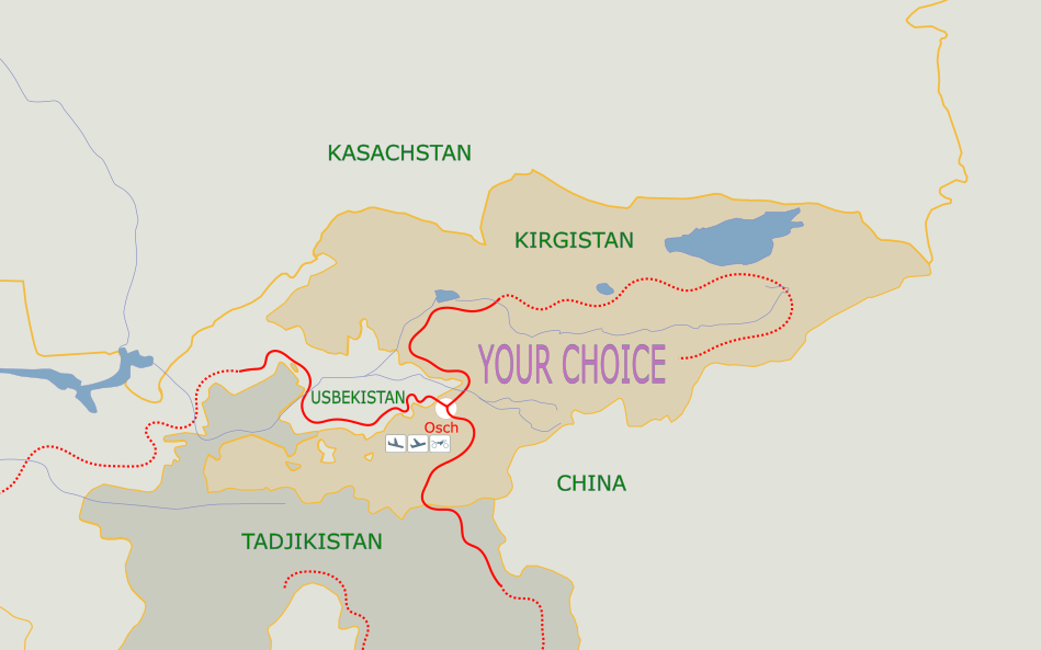 Wir gestalten das Programm nach Deinen Wünschen. Willst Du mit dem Motorrad die einsame Gebirgslandschaft von Kirgisistan entdecken oder lieber auch einige Perlen der Seidenstrasse in Usbekistan besuchen?